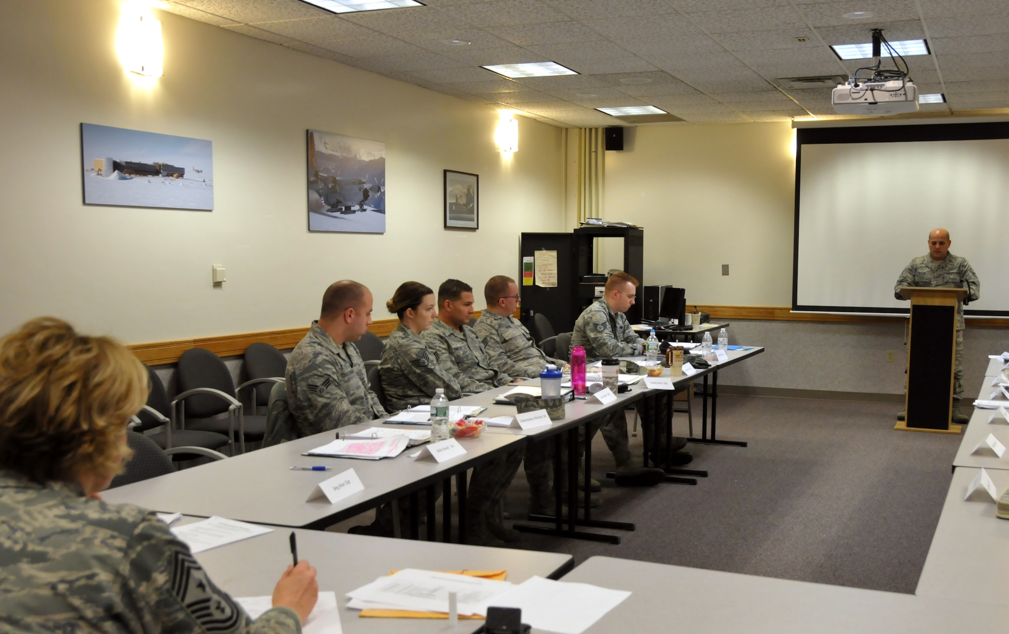 Brig. Gen. Anthony German, New York Air National Guard chief of staff, talks to Airmen during the 109th Airlift Wing's first Airman Development Course at Stratton Air National Guard Base, N.Y., on Jan. 30, 2015. 14 Airmen throughout the base took the three-day course Jan. 28-30, 2015. The course covered topics on public speaking, Air Force heritage, 109th AW history, teambuilding, conflict resolution, the evaluation process, financial and educational benefits, and more. (U.S. Air National Guard photo by Tech. Sgt. Catharine Schmidt/Released)